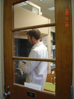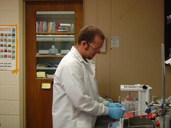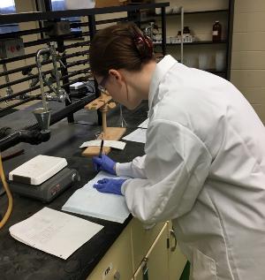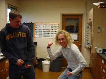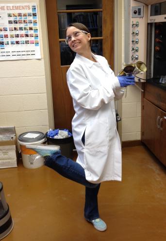 Abby, Sarah, and Alyssa all suited up and getting ready to do some chemistry! |