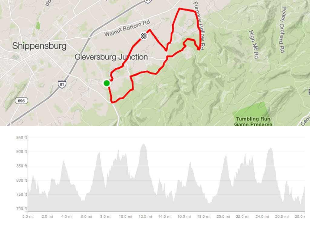 A nostalgic loop around the "easy" Horse Killer Road Race course. Beginning at the baseball fields in Southampton Township (NOT Southampton Township Park, but about a mile south of there on Neil Rd.), we head northeast on Gilbert Rd and onto the TNR course. Near the top of the Strohmsburg we take a left off the TNR course onto Chestnut Grove. A right on Rehoboth, another right on Furnace Hollow, then we hug the edge of the mountain south for a few short climbs and then loop back around past the baseball fields and finish about two miles on at the regular TNR finish line on Gilbert Rd. We'll do two laps...add the two mile stretch to the finish and that makes for about a 27.5 mile course.